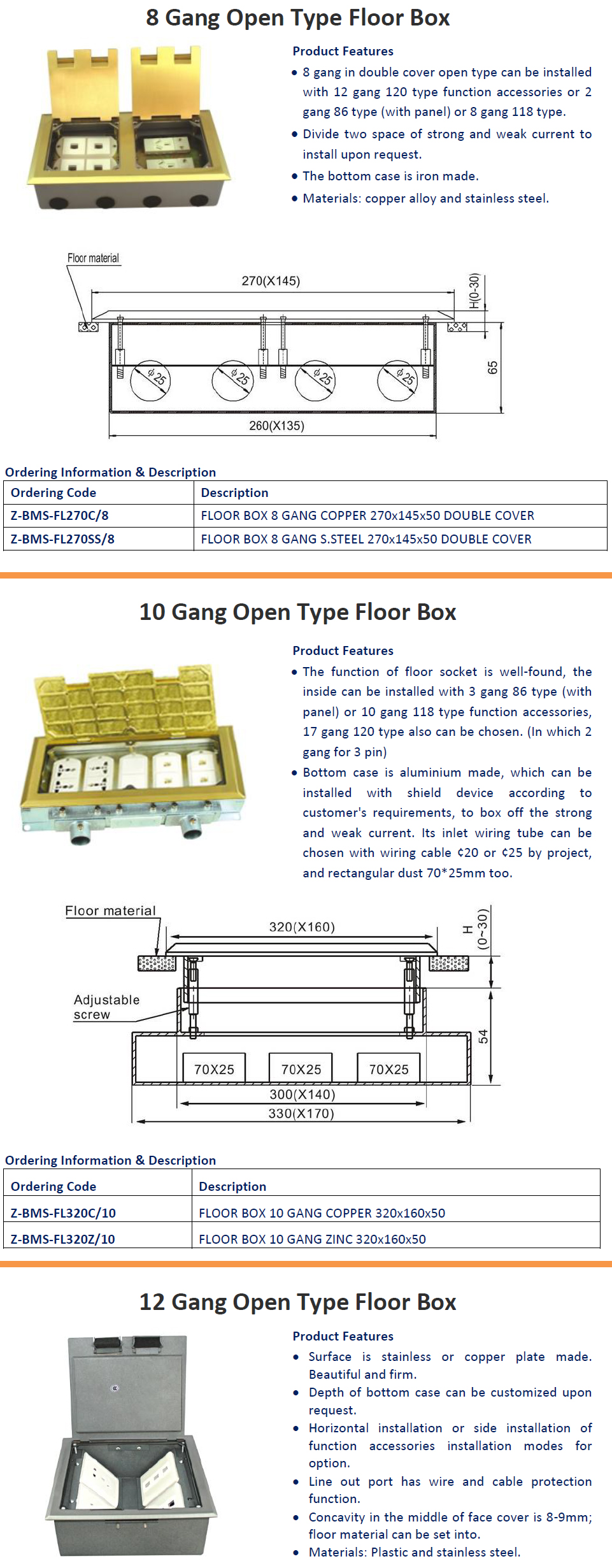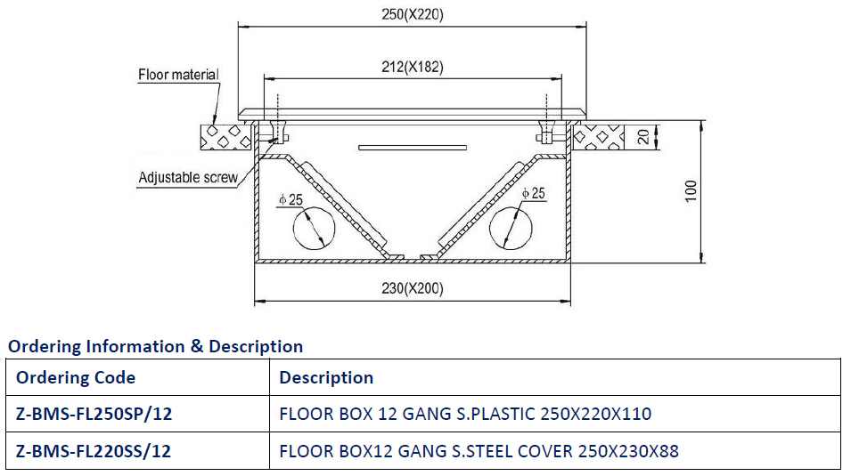 Floor Box 8, 10 & 12 Gang